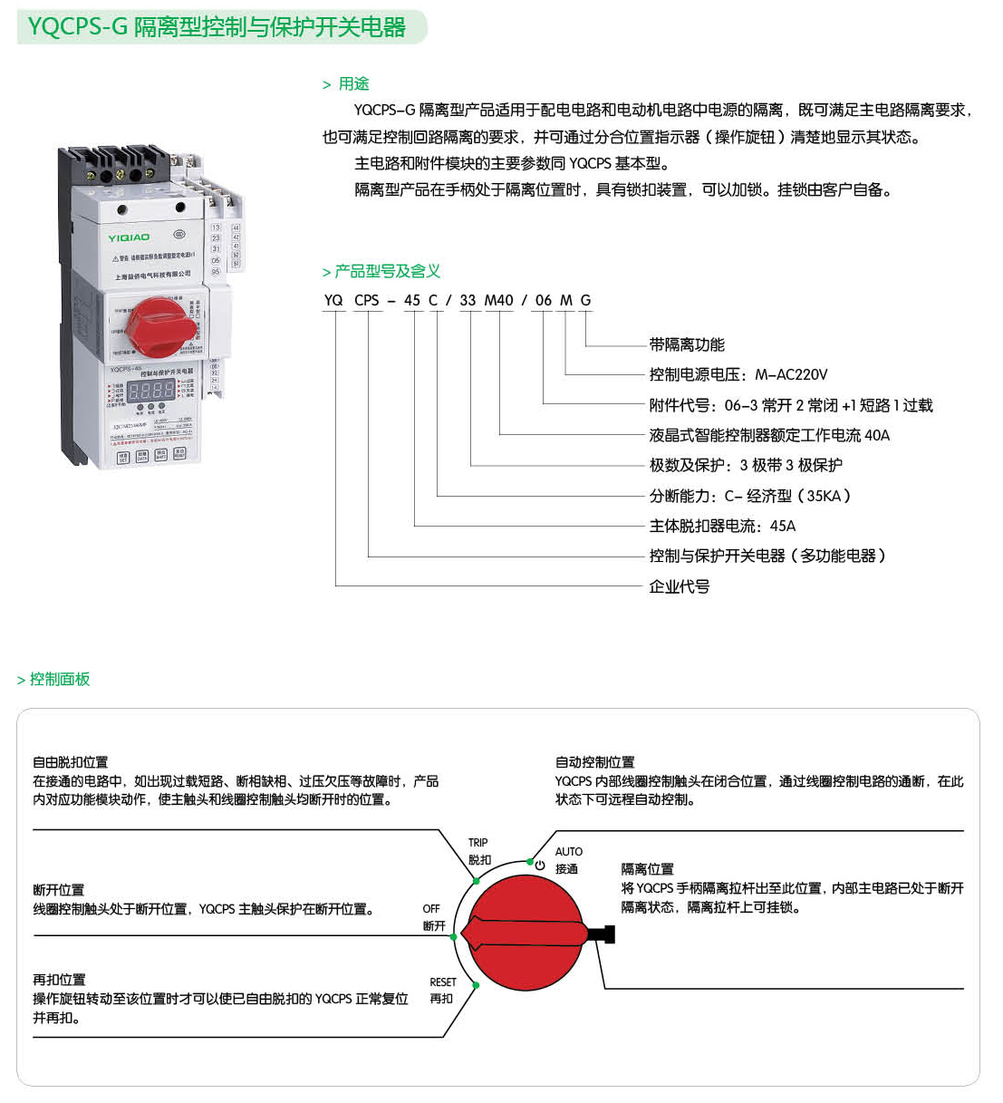 YQCPS-G隔離型控制與保護開關電器